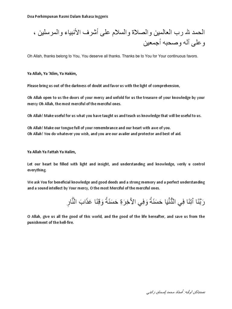 Doa Bahasa Inggeris Untuk Perhimpunan Pdf
